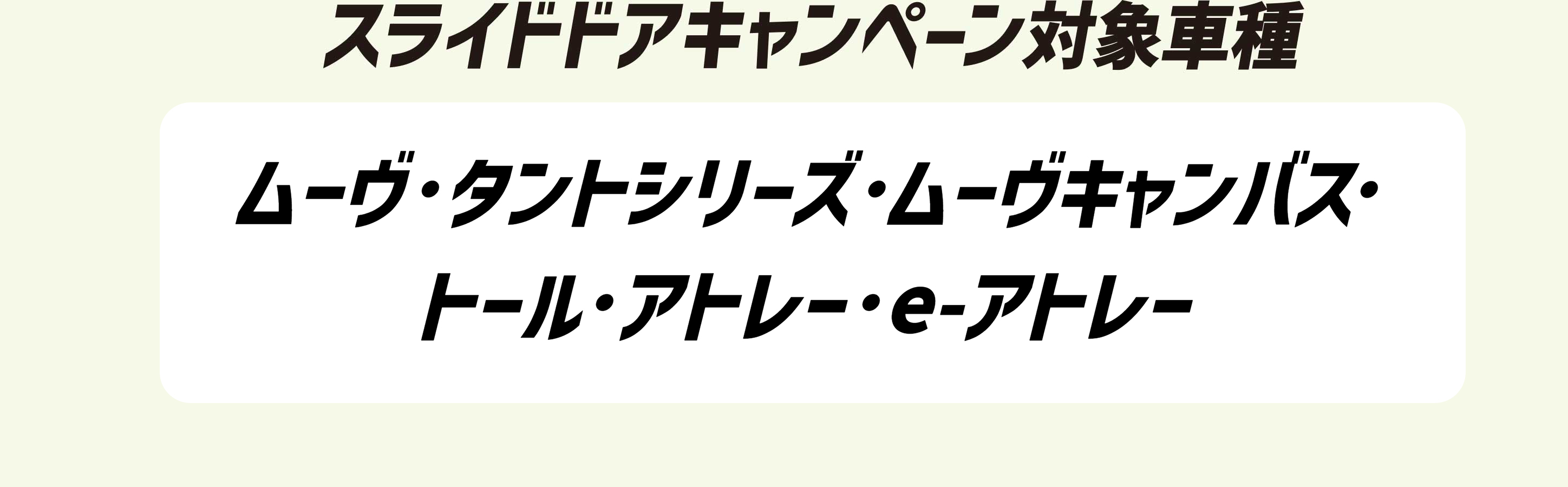 ■スマートアシストに頼った運転は絶対に行わないでください。スマートアシストは、ドライバーの判断を補助し、事故被害や運転負荷の軽減を目的としています。脇見運転やぼんやり運転などドライバーの前方不注意を防止したり、悪天候時の視界不良下での運転を支援する装置ではありません。また、あらゆる状況での衝突を回避するものではありません。運転時は常に先行車や歩行者との距離や周囲の状況、運転環境に注意して必要に応じてブレーキペダルを踏むなど距離を保ち、安全運転を心がけてください。■スマートアシストの認識性能・制御性能には限界があります。ドライバーの運転操作、急カーブ、急勾配、雨等の道路状況、および天候によっては、システムが作動しない、または作動が遅れる場合があります。■雪、濃霧、砂嵐の場合や、トンネル内、夜間、日射しの状況によってはステレオカメラ、ソナーセンサーが障害物などを正常に認識できず、適切に作動しない場合があります。■作動条件下であっても、システムが作動しない場合があります。■このほか、スマートアシストについて重要な注意事項が記載されておりますので、詳しくは取扱説明書をご覧ください。■スマートアシストの詳細は販売会社にお問い合わせください。■車種やグレードにより、装備内容や作動条件が異なる場合があります。