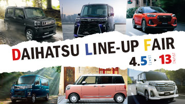 【本キャンペーンは終了しました】4月5日(土)~13日(日)まで「DAIHATSU LINE-UP FAIR」を開催♪新車がお得なキャンペーンも実施中!ご来店お待ちしております!