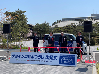 2023年4月3日(月)より、「チョイソコぜんつうじ」の実験運行がスタートしました。運行に先立ち善通寺市役所にて出発式も開催されました。